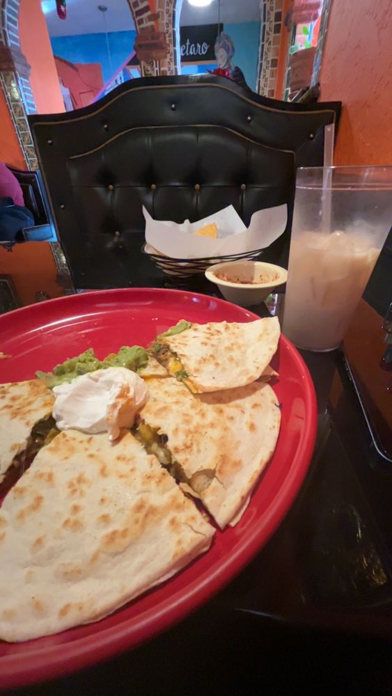 Large flour tortilla with choice of meat, melted cheese, served with sour cream, guacamole, fresh tomato and green onions
